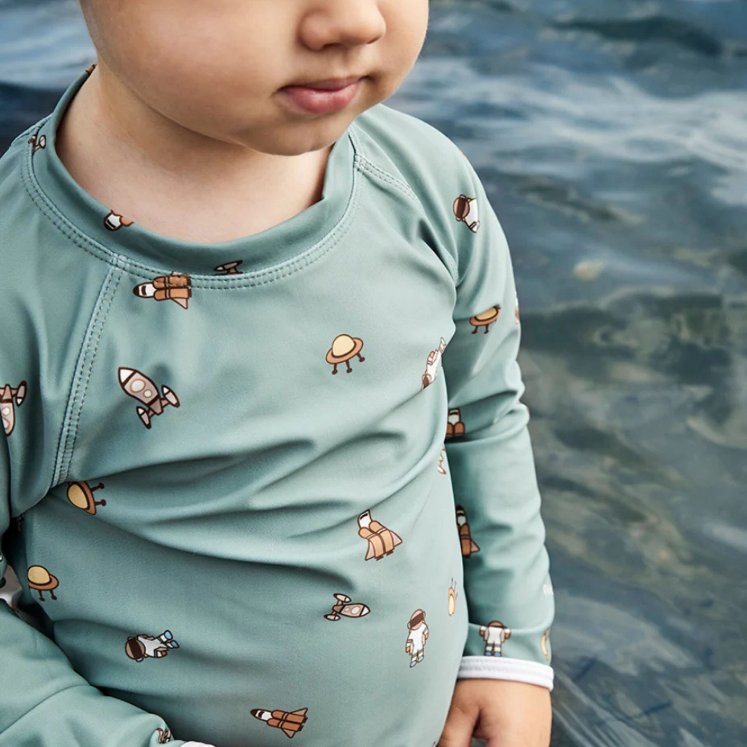 Kris Yüzme Tişörtü, geri dönüştürülmüş polyester malzemeden üretilmiş olup, 50+ UV koruma faktörü sunarak çocuğunuzu güneşin zararlı ışınlarından korur. Uzun kollu tasarımıyla güneş ışınlarına karşı ekstra koruma sağlar ve konforlu bir kullanım sunar. Marti yüzme şortu ile birlikte kullanıldığında mükemmel bir takım oluşturur.