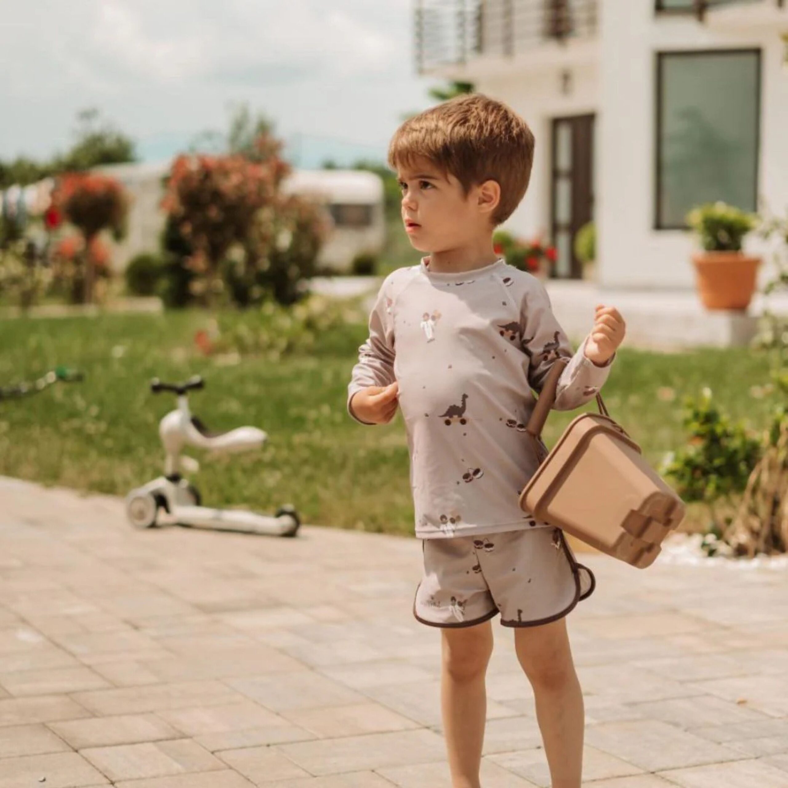 Nuuroo Marti UV Korumalı Erkek Şort Mayo Dino, eğlenceli dinozor desenleri ve üstün koruma özellikleriyle çocuğunuzun yaz aylarında vazgeçilmez bir parçası olacak! UPF 50+ UV koruma özelliği sayesinde güneşin zararlı ışınlarına karşı maksimum koruma sunar. Plajda, havuzda veya günlük kullanımda tercih edilebilecek bu şort mayo, rahat yapısı ve dayanıklı malzemesiyle uzun ömürlü bir kullanım sağlar.