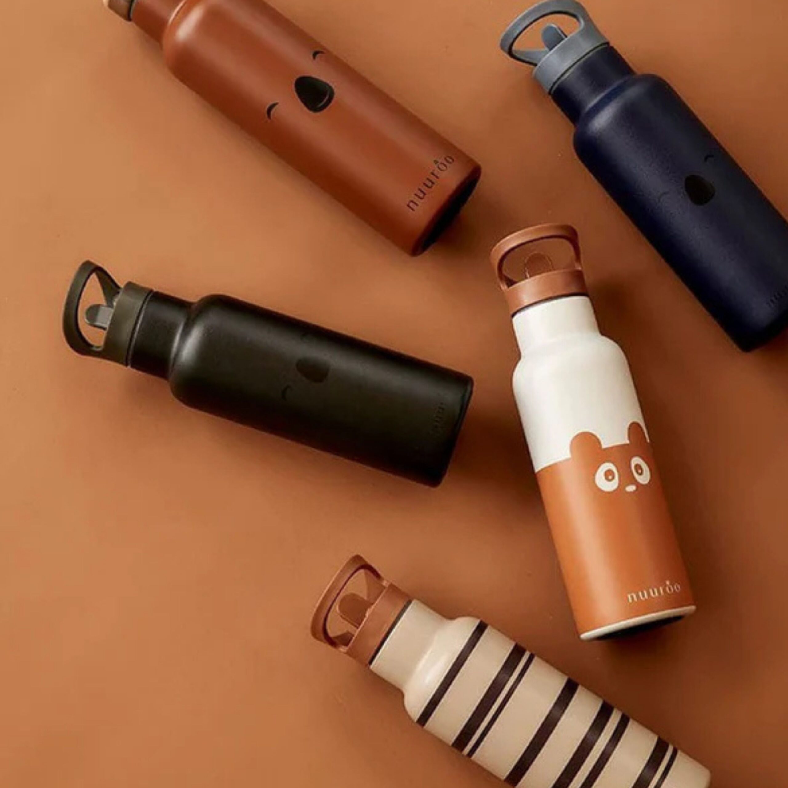 Bertil içme şişesi piyasadaki en iyi paslanmaz çelik malzemeden yapılmıştır – 18/8 çelik. Şişenin termo fonksiyonu vardır, bu sayede sıvıları 12 saat sıcak veya 24 saat soğuk tutar. İçme şişesi, üstü ahşapla kaplı normal bir kapak ve silikon ağızlı mükemmel ve sıkı içme fonksiyonuna sahip bir aktivite kapağıyla birlikte gelir. Her iki kapağın da kulpları vardır ve bir çantaya veya bebek arabasına kolayca takılabilir. Kapasite: 350 ml.